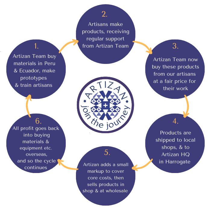 Handmade in Ecuador and the UK by highly-skilled disabled artisans trained and equipped by Artizan International.