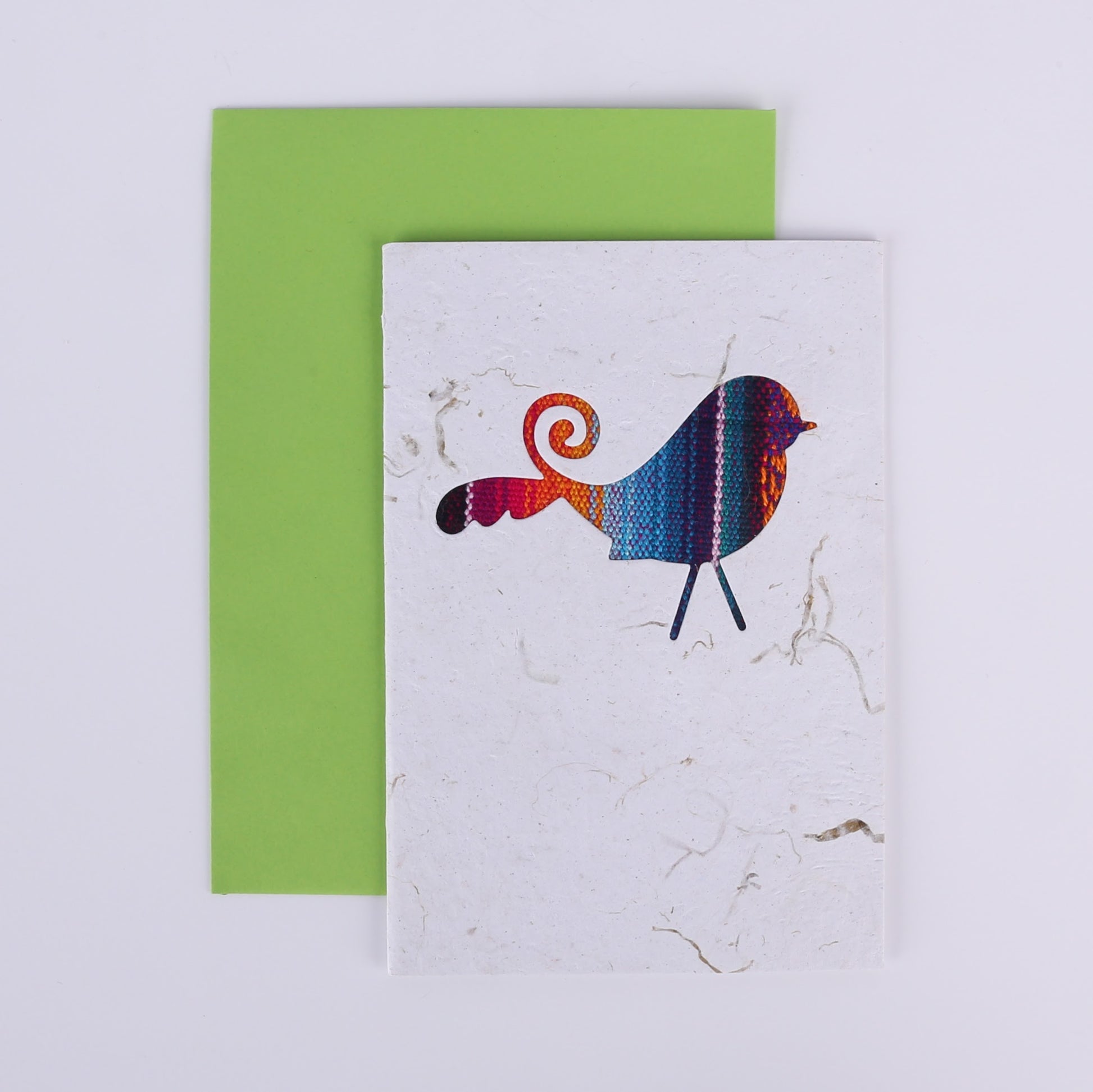 Our cards are made in Ecuador by disabled artisans. The card is made using banana leaf fibres and recycled paper, with the striped Ecuadorian fabric adding a splash of colour. Cards are signed on the back by the maker and blank inside for your own message. Each card is unique as they are all made using different pieces of fabric. They all come with a bright envelope.