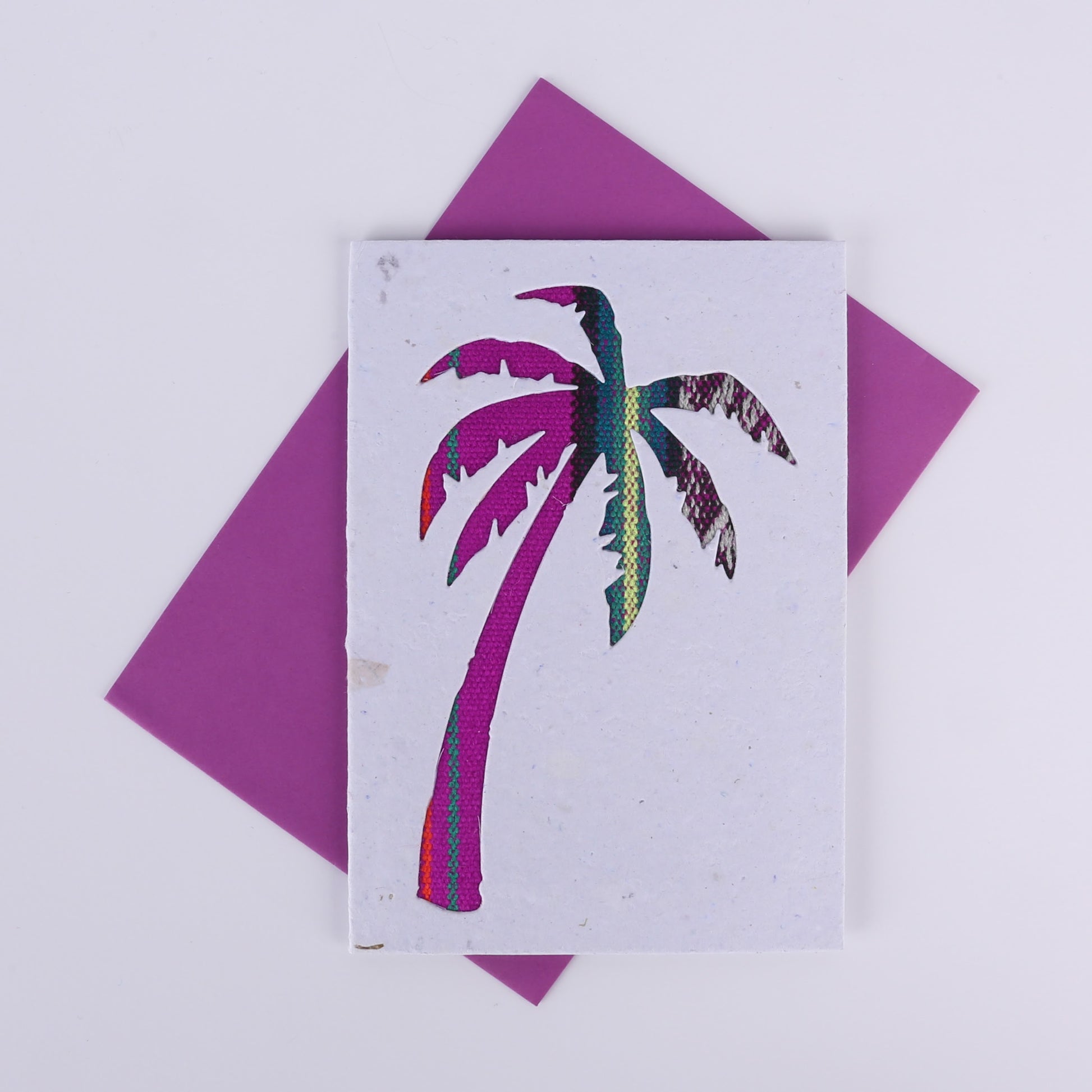 Our cards are made in Ecuador by disabled artisans. The card is made using banana leaf fibres and recycled paper, with the striped Ecuadorian fabric adding a splash of colour. Cards are signed on the back by the maker and blank inside for your own message. Each card is unique as they are all made using different pieces of fabric. They all come with a bright envelope.