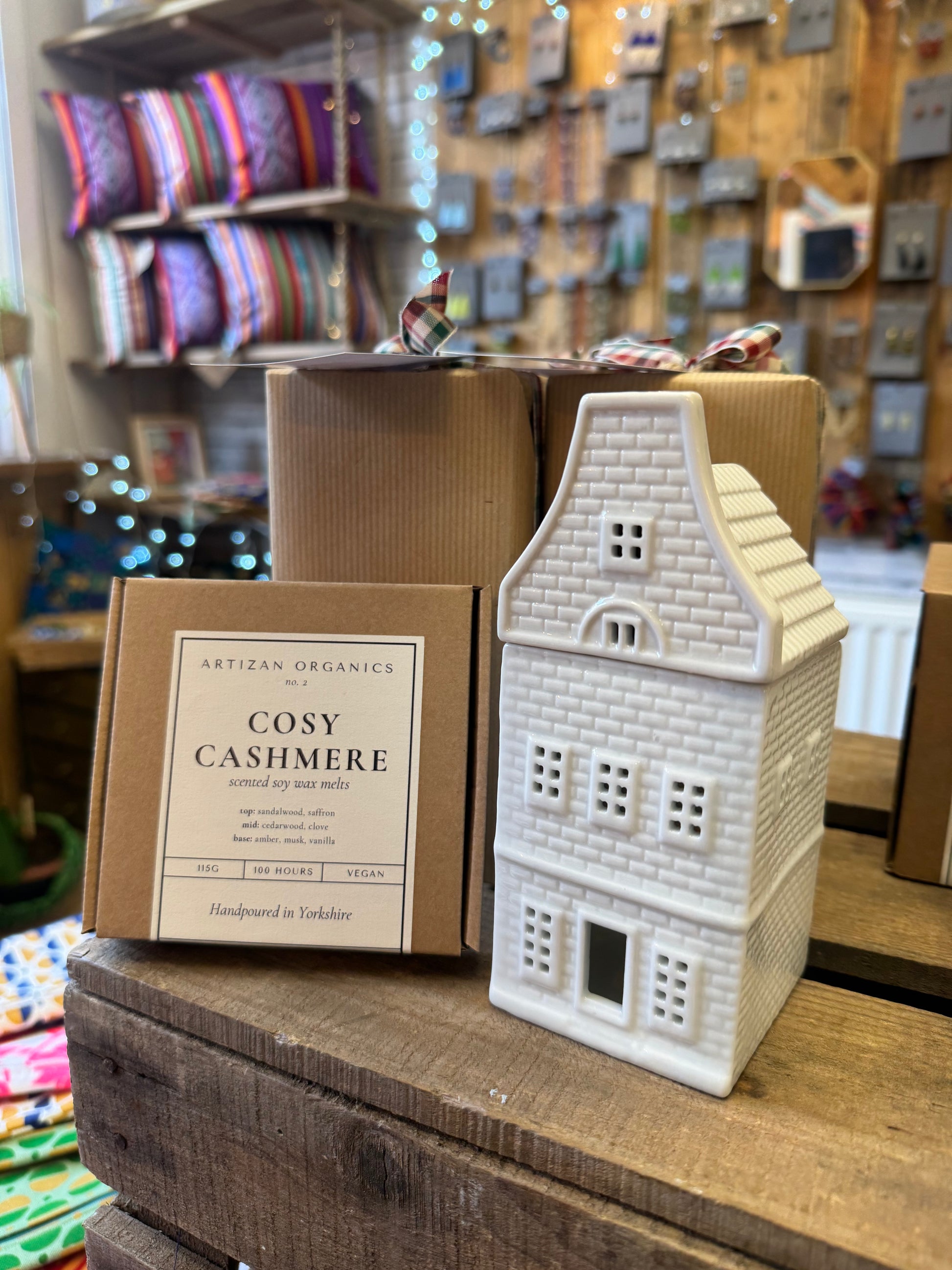 Designed as the perfect companion for our cosy holiday wax melts, it creates a beautifully scented, hygge-inspired atmosphere all season long. Simply place a standard tealight in the opening at the back, lift off the removable roof, and add a wax melt to the dish. Always remove lid while in use.